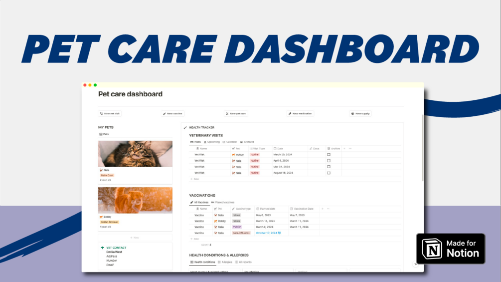 Pet Care Dashboard - Notion Template